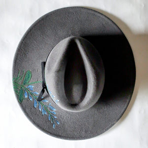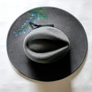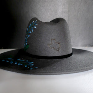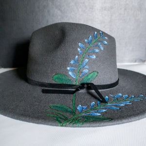 The Bluebonnets Hat is made with an attention to detail. It features an original burned design of bluebonnets then hand painted. For now, this beautiful hat is adorned with a simple black velvet ribbon but you can make it your own! Check out our selection of hat bands here. Crafted with care, this hat is a timeless accessory for any wardrobe.