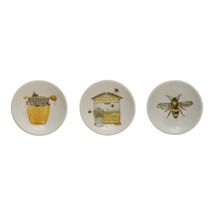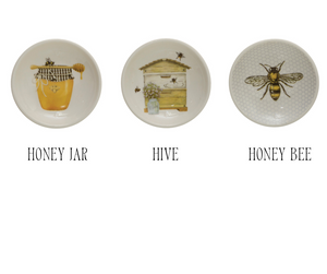 3" Round Stoneware Dish w/ Bees & Honey, Multi Color.