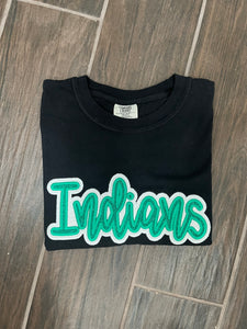 Custom embroidered Indians T-shirt is Black Comfort Colors T-shirt. 100% cotton.